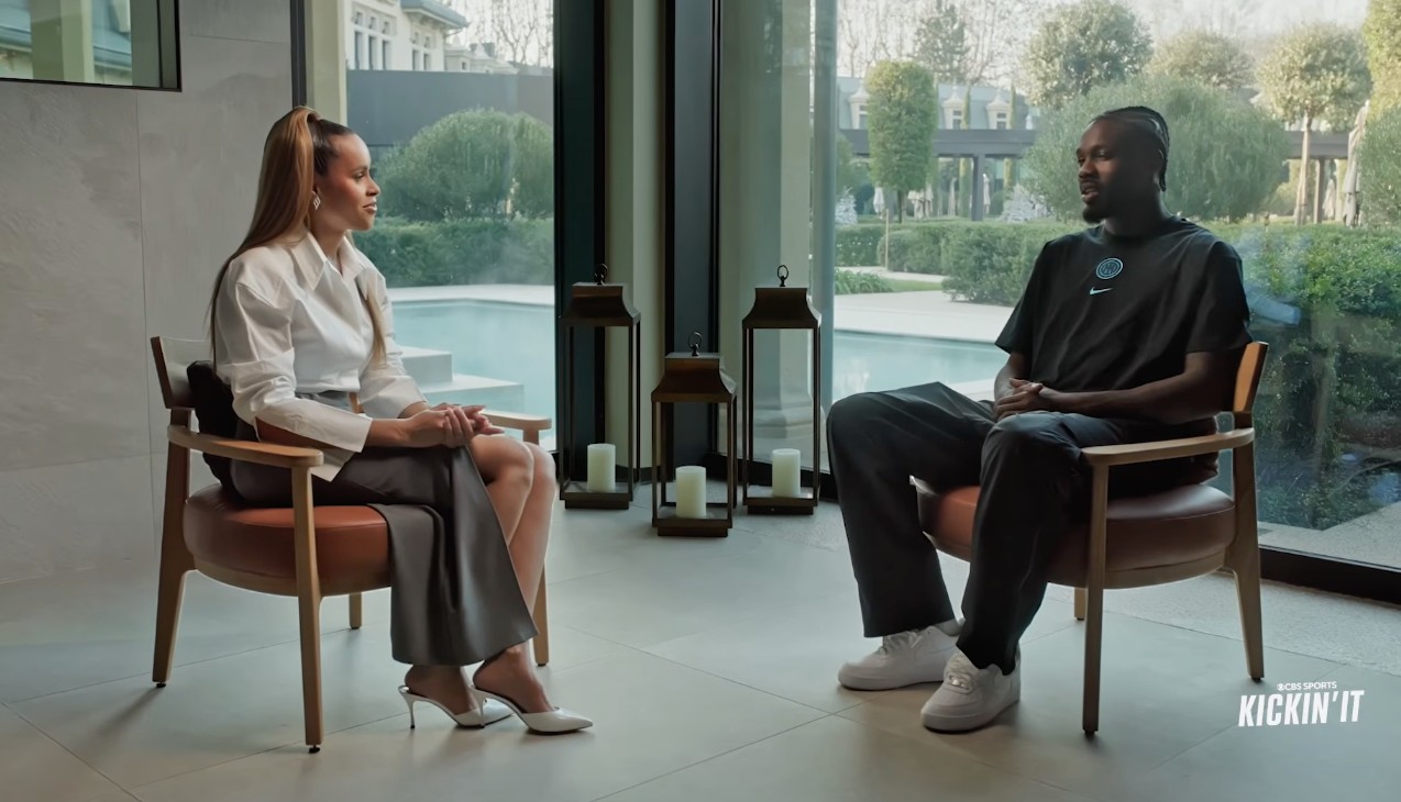 国米前锋马库斯-图拉姆接受了CBS体育的专访,谈到了父亲以及弟弟凯夫伦-图拉姆,回顾2022年世界杯并展望即将到来的世界杯,讨论足球界的种族歧视问题等,本文是专访内容的第一部分。大家好,欢迎收看新一期KickingIt。我们今天的嘉宾来自一个著名的足球家庭。与那位赢得世界杯、以防守著称的父亲不同,他以进球闻名。他是一股强大的进攻力量,以速度、脚后跟技术和精彩进球著称。他踢球充满快乐,欢迎来到Kic